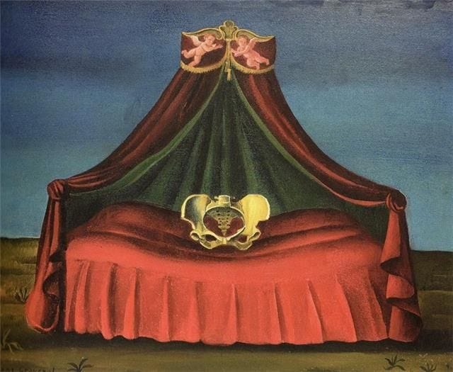 Jane Graverol (1905-1984) somehow combines elements of my other favourite artists: she explores girlhood like Dorothea Tanning, maps the organic terrain of the female form like Ithell Colquhoun, was unabashed in her sexuality like Leonor Fini, provokes the domestic like Gertrude Abercrombie, channels mysticism like Leonora Carrington, considers technology and mythology like Remedios Varo, and explores botany like Helen Lundeberg. But her work is unmistakably Graverol’s, or, as she described her canvases, “waking, conscious dreams”. Winged creatures—angels, birds, butterflies, and more mystical creatures like phoenixes or dragons—appear in many of her paintings, and while her work is mythical, it often features a mechanical element, with women and machinery working together to achieve pure freedom without constraints.